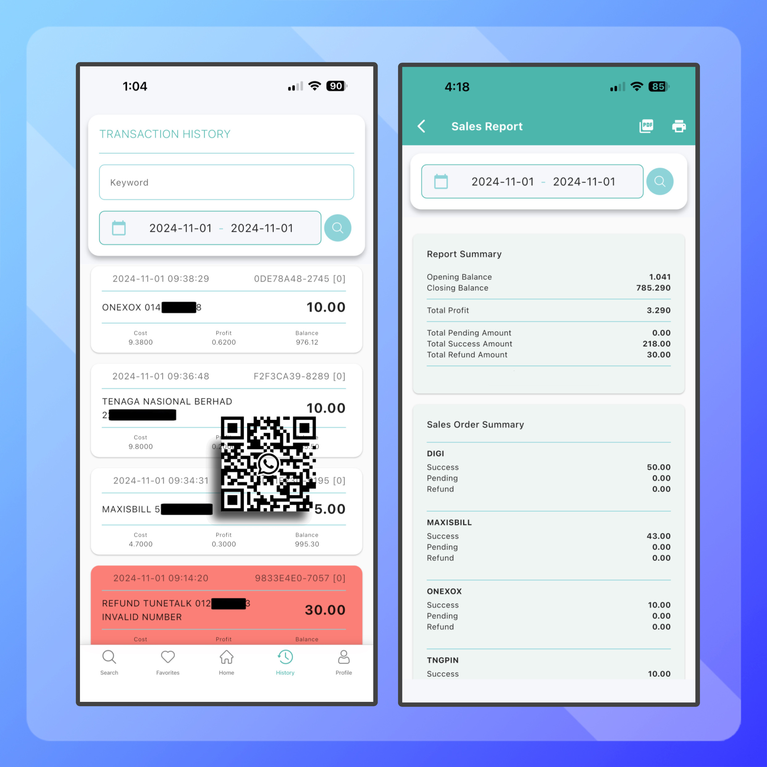 ✓ Boleh menjual pelbagai topup (telco, pin, voucher, games, antarabangsa) serta membayar bil utiliti dan telefon, serta boleh mendaftarkan dua level downline.